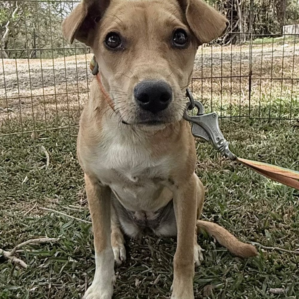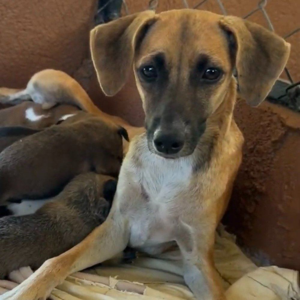 Hermosa is approximately four years old and so very beautiful. We received a call to see if we could rescue her with her seven young puppies, which were in a state of malnutrition and dehydration. Upon arriving at the site in an empty lot, we found the dog protecting the puppies hid in a cave, which were rescued by our team and placed safely in a carrier and brought to our rescue. Hermosa is now in good health, sterilized, and available for adoption. Three of her precious puppies are still available for adoption. This girl will for sure steal your heart!