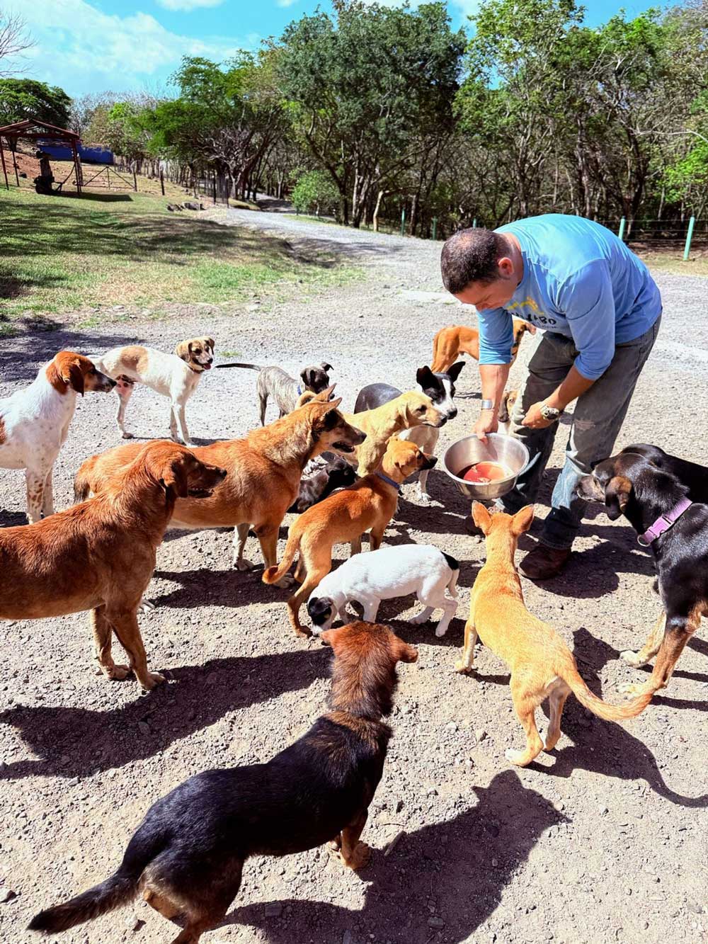 Thank you for visiting! Nestled on 300 breathtaking acres in Costa Rica’s Guanacaste Province, our sanctuary sits near the base of the Miravalles Volcano—hence our logo! Our lush rolling hills are home to nearly 100 rescued animals, each with their own story, and our free-roaming dogs can’t wait to meet you.